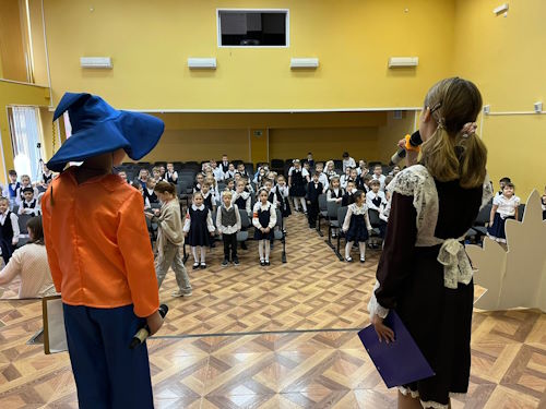 Первоклашек от души развеселили и поздравили волонтеры ярким красочным представлением.